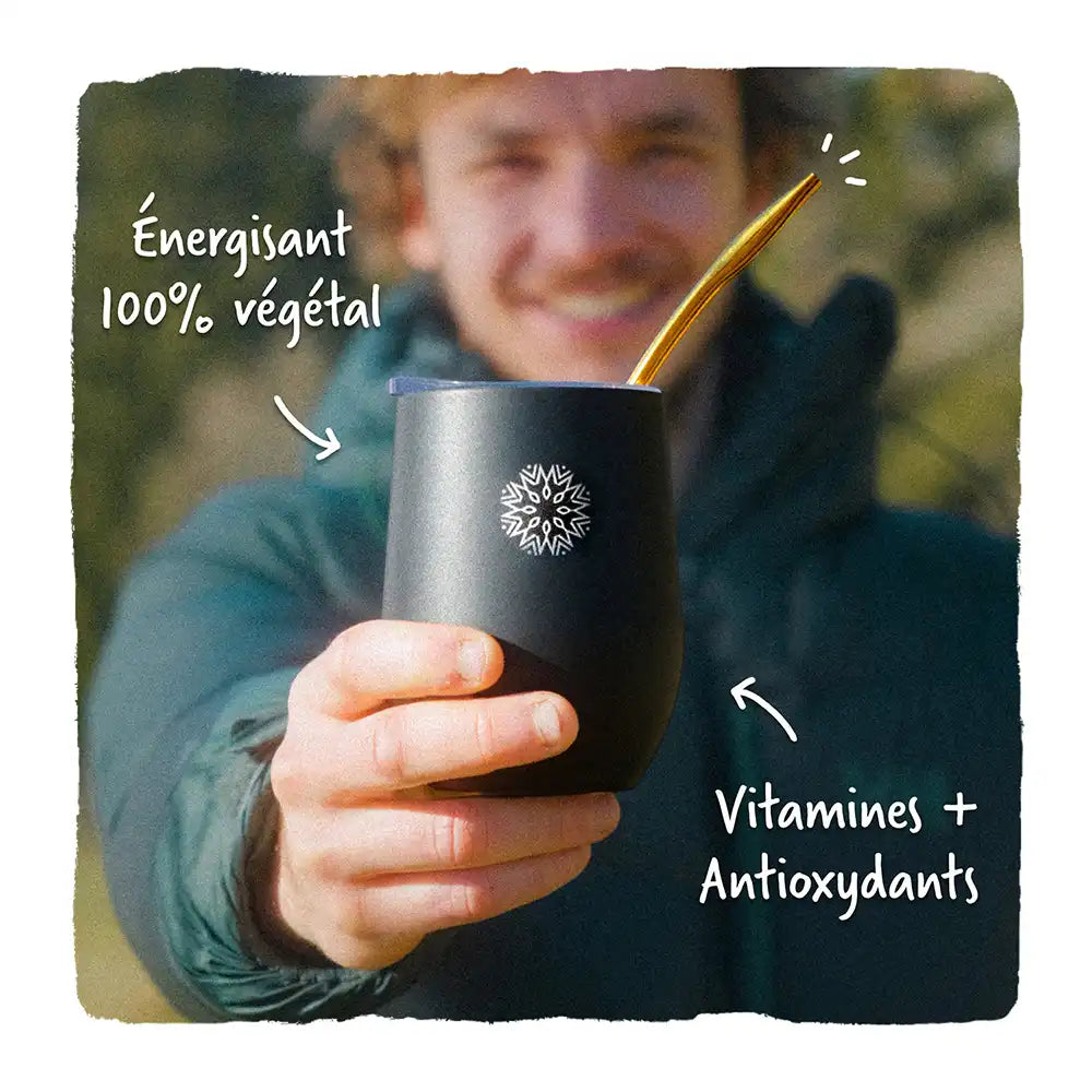 Bonne question ! C'est une infusion sud-américaine ancestrale à base de yerba maté (herbe de maté en français), pleine de qualités nutritives et aux nombreuses vertus. Si vous souhaitez en savoir plus, nous en parlons en profondeur sur notre blog !